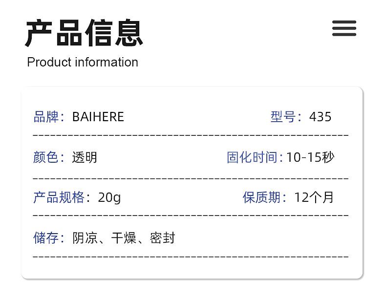 产品名称:435瞬干胶