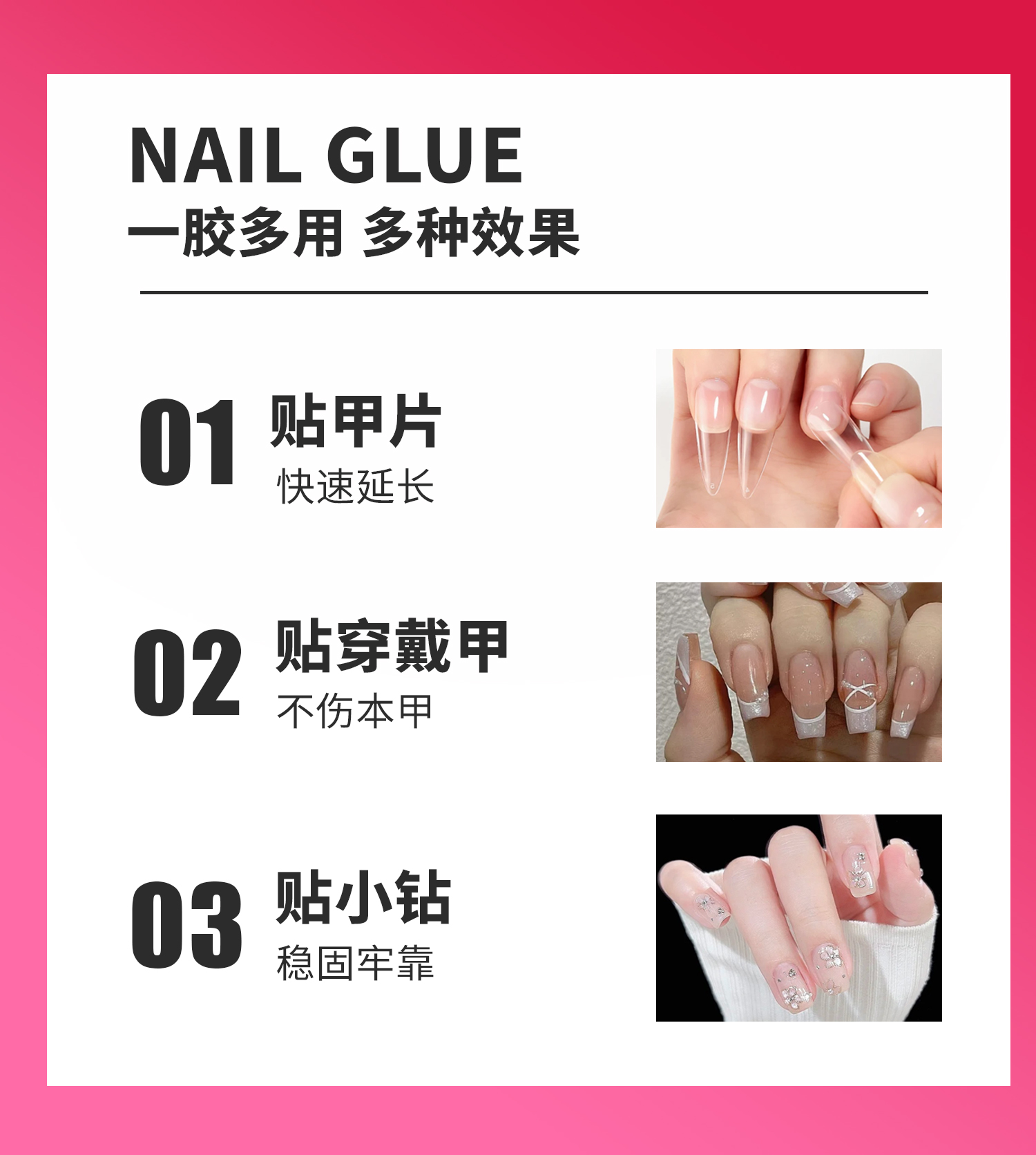 产品功效:贴甲片、穿戴甲牢固持久